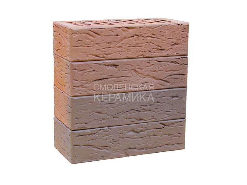 Керамический кирпич ЛСР лицевой (облицовочный) флэш пустотелый рустик одинарный формата 1NF имеет размер 250*120*65мм. Данный кирпич светло-коричневого цвета, с рустированной поверхностью со сколотыми (рваными) краями лицевой части. Применяется для облицовки фасадов, наружных и внутренних стен зданий, заборов. Кирпич керамический изготавливается из глины путём обжига. Технология окрашивания Флэш-обжиг. На завершающей стадии обжига, при сохранении высокой температуры в печи, приостанавливается подача воздуха, при этом горение продолжается. За счёт этого кирпич приобретает различные оттенки.